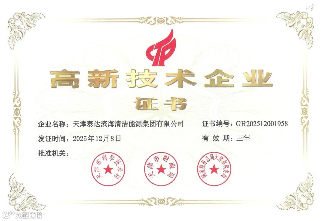 近日,滨海投资全资附属公司天津泰达滨海清洁能源集团有限公司(简称“泰达清洁能源集团”)顺利通过评审,再次被认定为国家高新技术企业。