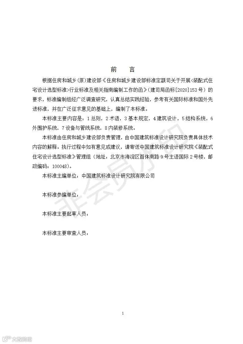 根据《住房和城乡建设部标准定额司关于开展<装配式住宅设计选型标准>行业标准及相关指南编制工作的函》(建司局函标〔2020〕153号),我部组织中国建筑标准设计研究院有限公司等单位起草了行业标准《装配式住宅设计选型标准(征求意见稿)》(见附件)。现向社会公开征求意见。有关单位和公众可通过以下途径和方式提出反馈意见: