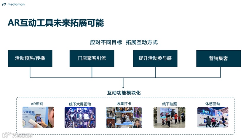 由于海尔未来还会在各种活动上进行多种方式的传播,mediaman 提出了将本次互动进行模块化的建议,也就是能够让海尔根据自身需求选择所需要的互动模块,自由组合所需的功能,并且能够替换互动素材,从而生成不同的 AR 互动方式,适应线上传播、线下门店和展览等多种需求。
