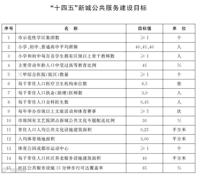 到2025年,新城公共服务优质均衡水平显著提升,人才吸引集聚能力明显增强,居民就近服务需求基本满足,15分钟社区生活圈初步覆盖,建成一批显示度高、获得感强的重大功能性民生项目,引入一批高水平、专业化、特色化的公共服务品牌资源,新城公共服务区域影响力明显提高。