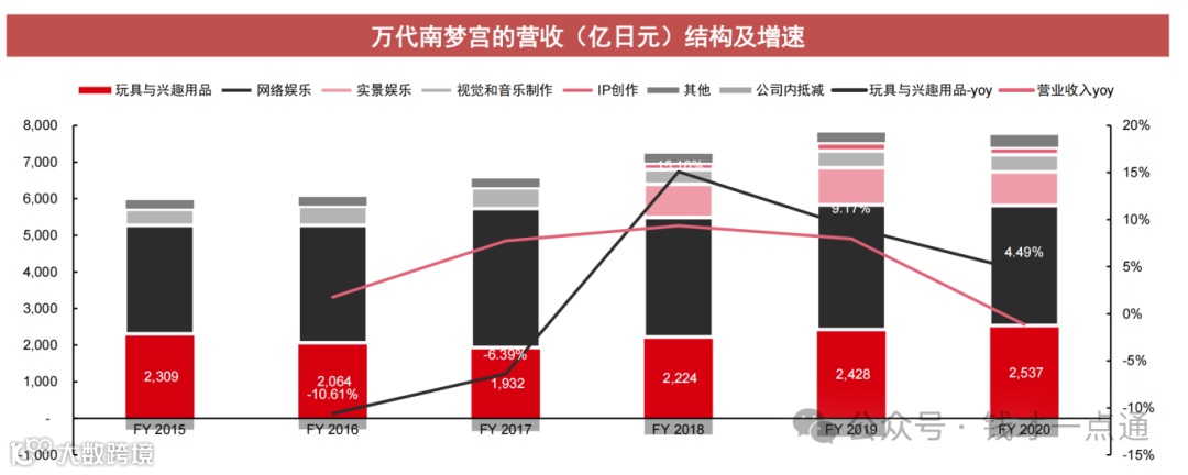 万代南梦宫的业务布局遍及文娱产业上下游,在网络游戏、线下娱乐、玩具及兴趣用品 等方面均有布局。2019年公司实现营收7,240亿日元(yoy-1.15%),其中玩具及兴趣用 品分部实现营收2,537亿日元(yoy+4.49%)。