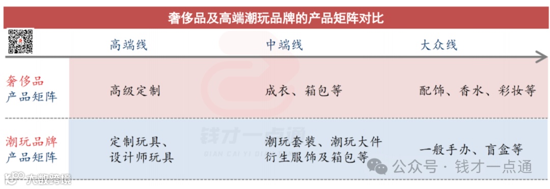 参考奢侈品行业的发展规律,此阶段的潮玩品牌需要打造有层次的产品矩阵。通过高端 产品条线引领消费潮流,在消费者中构建向心力;通过潮玩套装、衍生服饰及箱包等产品 扩大IP影响力;最后,通过平价手办、盲盒等产品满足大众消费者需求。