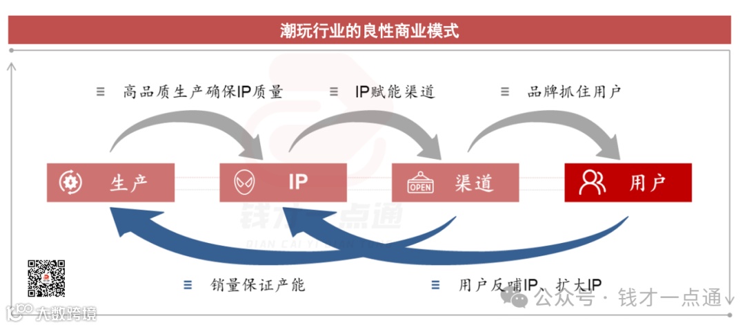好的潮玩模式,要能将生产、IP、渠道和客户这4项核心要素打造成可以良性互动的闭环: