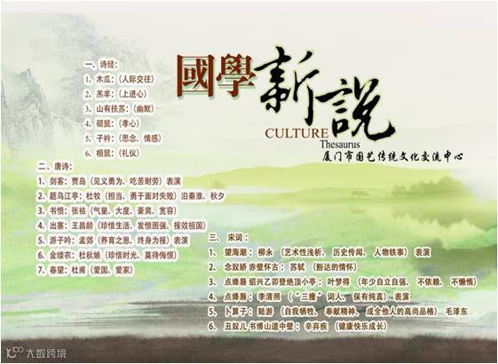 厦门国艺传统文化交流中心旨在弘扬中国传统文化,以琴、 棋、书、画、国学推广为己任。