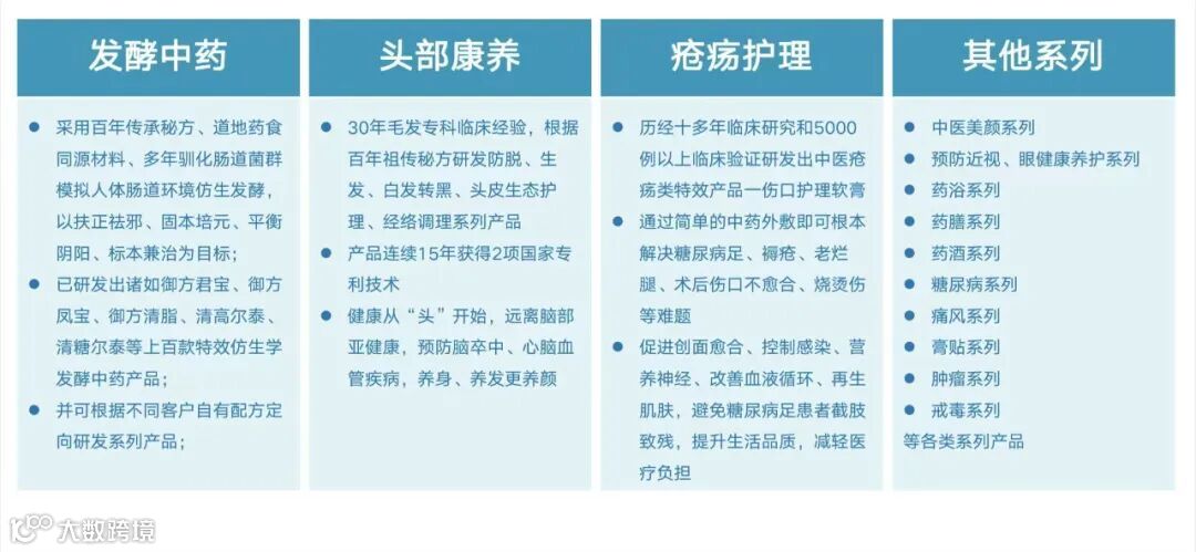 已研发出诸如御方君宝、御方凤宝、御方清脂、清高尔泰、清糖尔泰等上百款特效仿生学发酵中药产品。