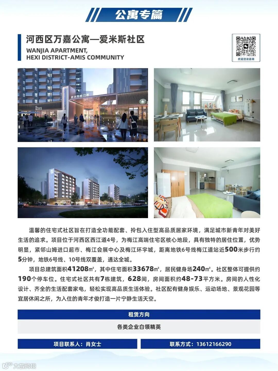公寓方面,万嘉公寓位于梅江高端住宅区核心地段,地铁6号线、10号线双覆盖,拥有628间住房、190个停车位,健身娱乐、运动场地、景观花园等配套设施齐备;天江公寓、天泽公寓地处经开区第十三大街,其中天江公寓拥有1706间住房,天泽公寓拥有386间住房,交通便利,商超配备完善,毗邻众多知名企业。三大公寓品牌定位白领、蓝领不同客群,设施完备,提供管家式服务,为不同客群提供舒适居住体验。