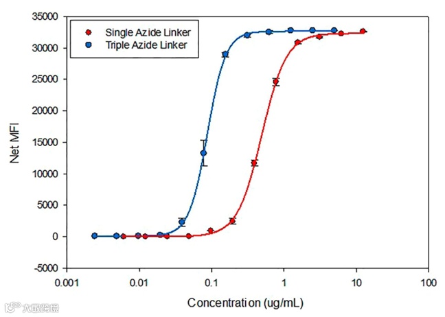这个引入"点击化学"技术的偶联法,是利用在混合有机/水溶液中反应时间短的"点击化学",达到将肽与微球偶联的同时,也减低微球染料浸出的机会。其优点在于可连接任意长度及序列的肽,即使是水溶性差的短肽或环肽均能适用。