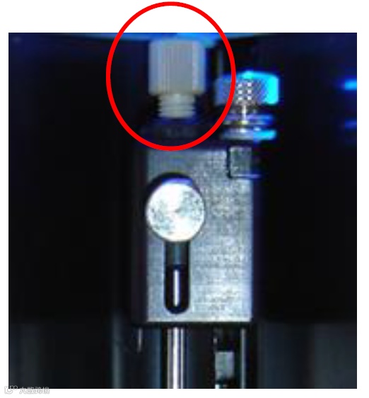 注射器清洗探针:使用注射器,依序吸取 0.1 N NaOH > 70~75% 酒精 > 水 (每种清洗 5 回),來回沖洗探针