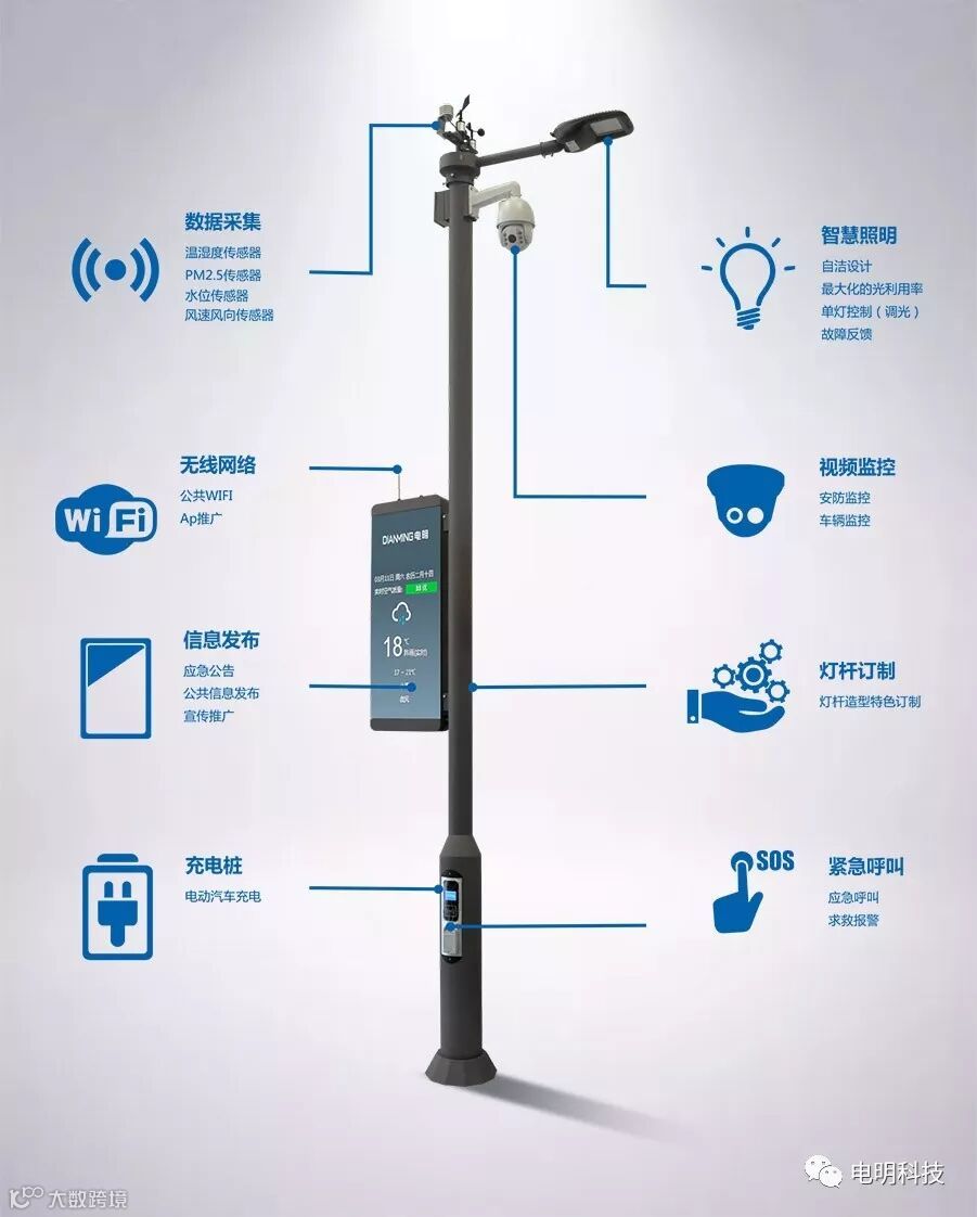 在智慧城市建设发展的大背景下,智慧路灯应运而生。智慧路灯实现了如充电桩、LED信息发布屏、高清摄像头、应急报警、5G基站搭载网络、停车检测、环境感知、积水监测、网络音像等功能,利用物联网及互联网技术,使路灯成为智慧城市信息采集终端和便民服务终端。