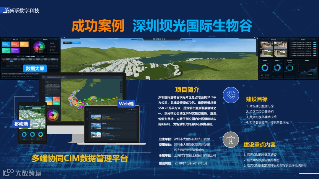 深圳国际生物谷坝光片区地处深圳东部,总占地面积31.9平方公里,核心启动区占地9.4平方公里,是深圳市重点建设片区之一。片区建设体量大、时间紧、任务重,传统的统筹管理模式局限性逐步显现。因此,坝光片区于2016年全面引入BIM技术,基于三年来积累的BIM数据,于2018年开发搭建“深圳国际生物谷坝光片区CIM平台” 全方位协助片区规、建、管的多维度、全阶段应用。