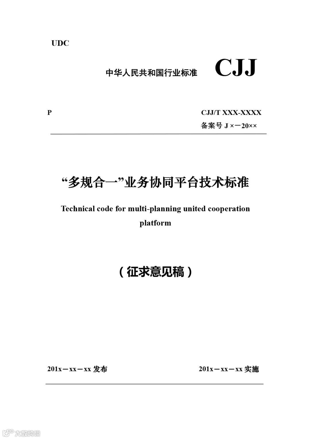 根据《关于开展<“多规合一”信息平台技术标准>工程建设行业标准制订工作的函》(建标标函〔2017〕231号),我部组织住房和城乡建设部城乡规划管理中心等单位起草了行业标准《“多规合一”业务协同平台技术标准(征求意见稿)》(见附件)。现向社会公开征求意见。有关单位和公众可通过以下途径和方式提出反馈意见: