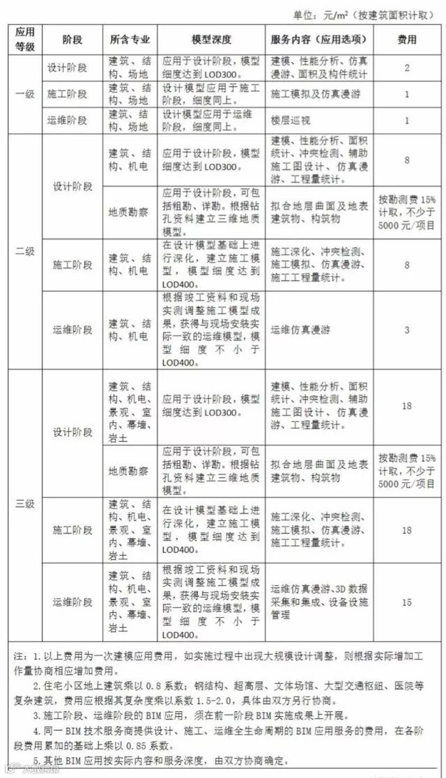 2017年9月,浙江省住房和城乡建设厅出台《浙江省建筑信息模型(BIM)技术推广应用费用计价参考依据》,根据项目类型、模型深度及应用等级设置了收费标准。