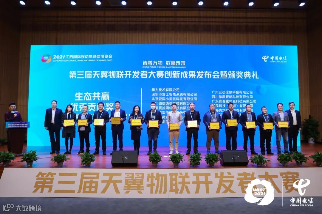 11月8日,第三届天翼物联开发者大赛创新成果发布会暨颁奖典礼在江西国际移动物联网博览会圆满落幕,赛博威荣获“生态共赢优秀贡献奖”!