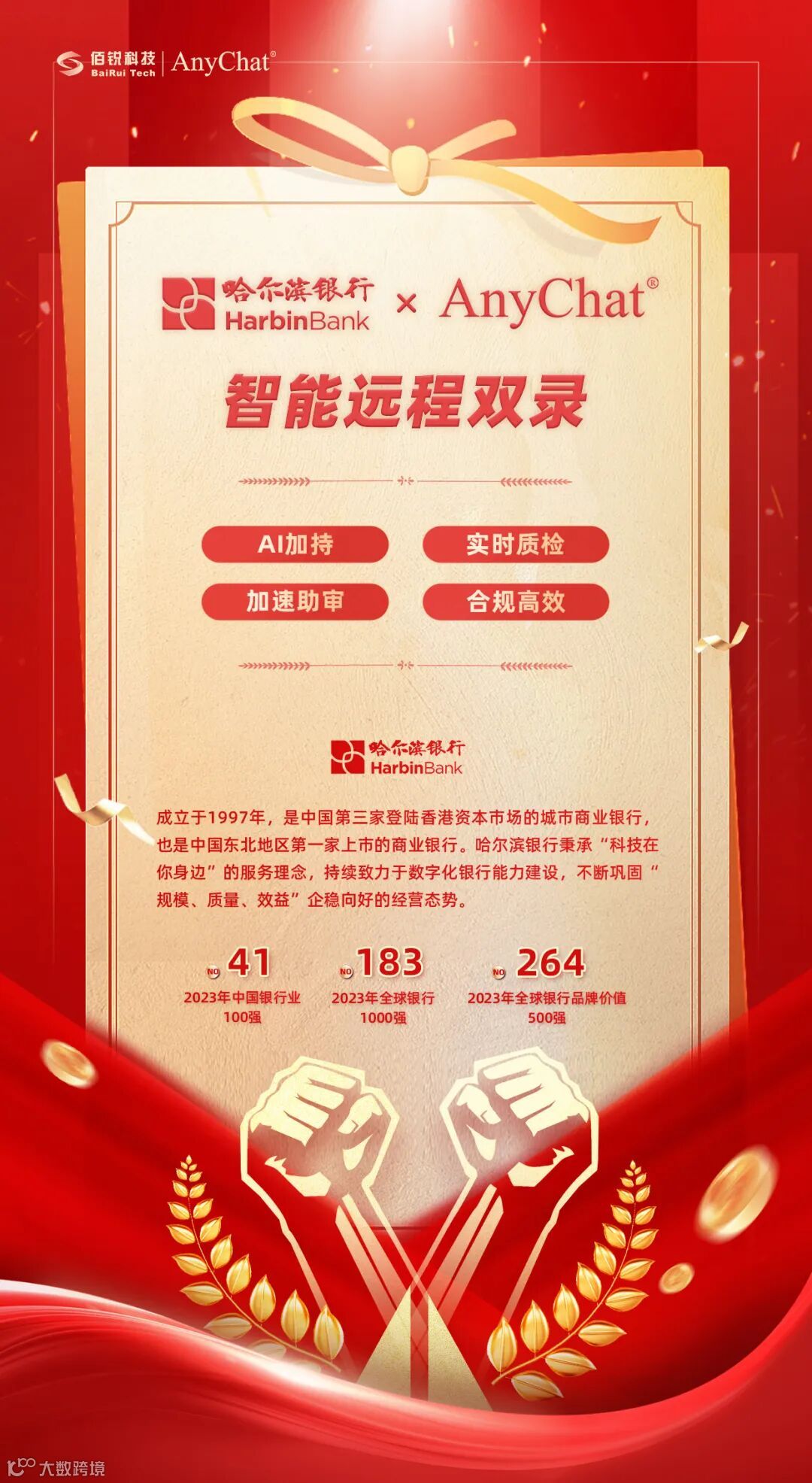 捷报不断!AnyChat中标哈尔滨银行智能远程双录项目!