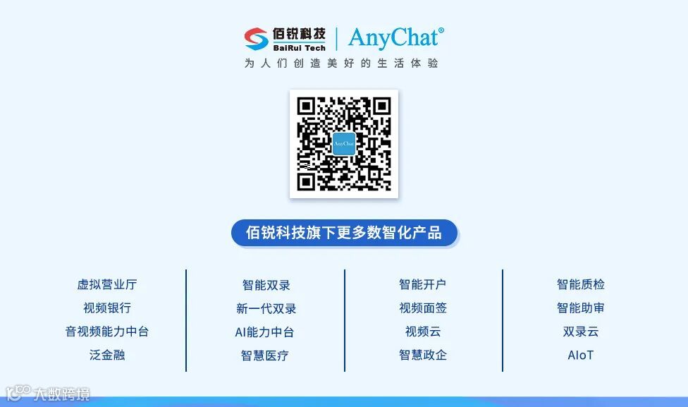 一次次SDK升级的背后,依靠的是AnyChat不断夯实的【音视频+AI】技术底座,通过将行业核心场景的标准化逻辑抽取封装,进一步隐藏其中复杂难懂的底层技术、编程语法,化繁为简,以匠心理念为金融、医疗、政务、互联网、IoT等多行业客户提供业界领先、高复用性、强扩展性的产品和服务。