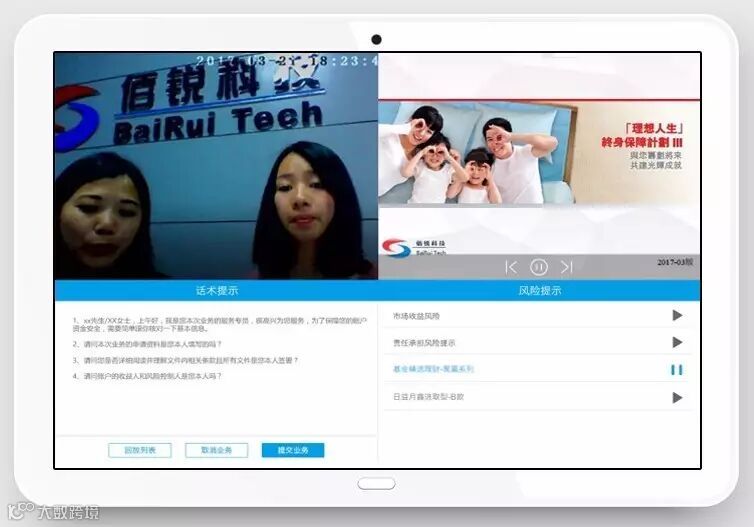 答:《办法》中规定保险代理人销售保险要进行“双录”,而保险代理人的销售场景多为非柜台的移动化场景。AnyChat双录能力平台针对保险代理人提供“移动双录”解决方案。方案覆盖iOS、Android操作系统,以及手机、Pad、iPad移动设备,适应3G、4G、wifi等多种复杂网络环境,并支持断点续传,利用保险代理人的移动设备,即可真实、完整的记录保险业务办理全过程。