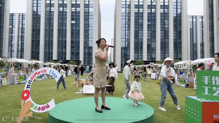 除了琳琅满目的产品与美食,草坪中的舞台上,演唱、魔术等节目轮番上演,更是将集市的热度持续“升温”。