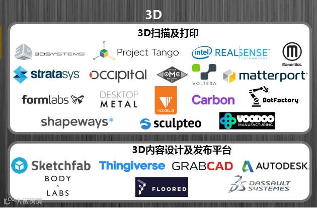 3、 3D:3D扫描及打印、3D内容设计及发布平台。