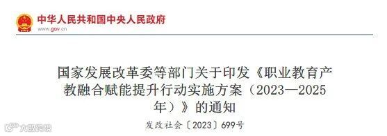 《职业教育产教融合赋能提升行动实施方案(2023—2025年)》明确,重点支持校企共建产教融合实训基地,深化融合。支持职校与企业、科研院所协同创新,共建重点实验室、研究中心、创业创新中心等创新平台。聚焦先进制造、新能源、人工智能等战略性新兴产业,以真实生产环境推进“教学+生产”一体化,提升人才培养质量和服务区域经济能力。
