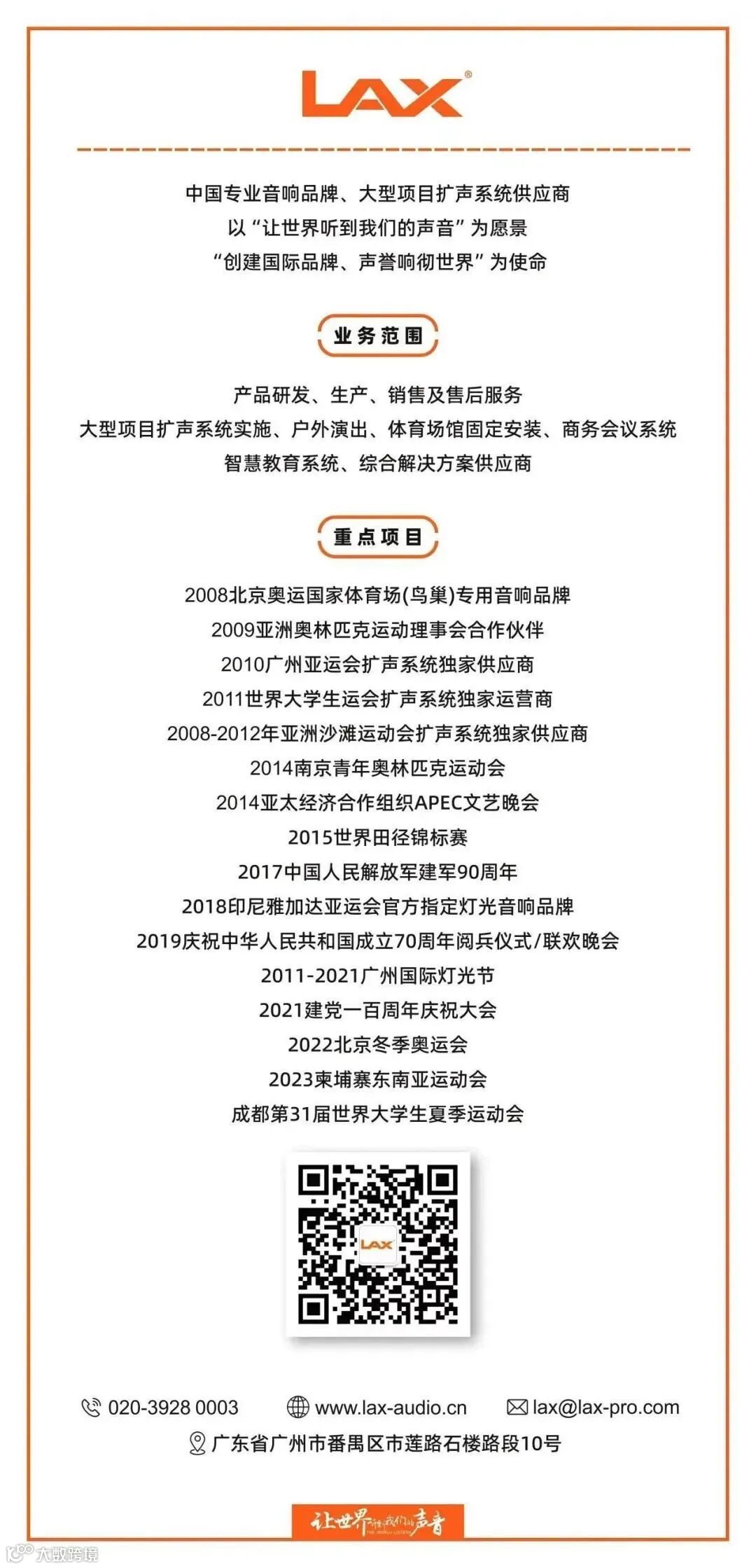 LAX为场馆量身定制的高品质扩声系统,正以其卓越表现,清晰传递赛场上的每一声呐喊与喝彩,为运动员和观众营造沉浸式的竞技氛围。