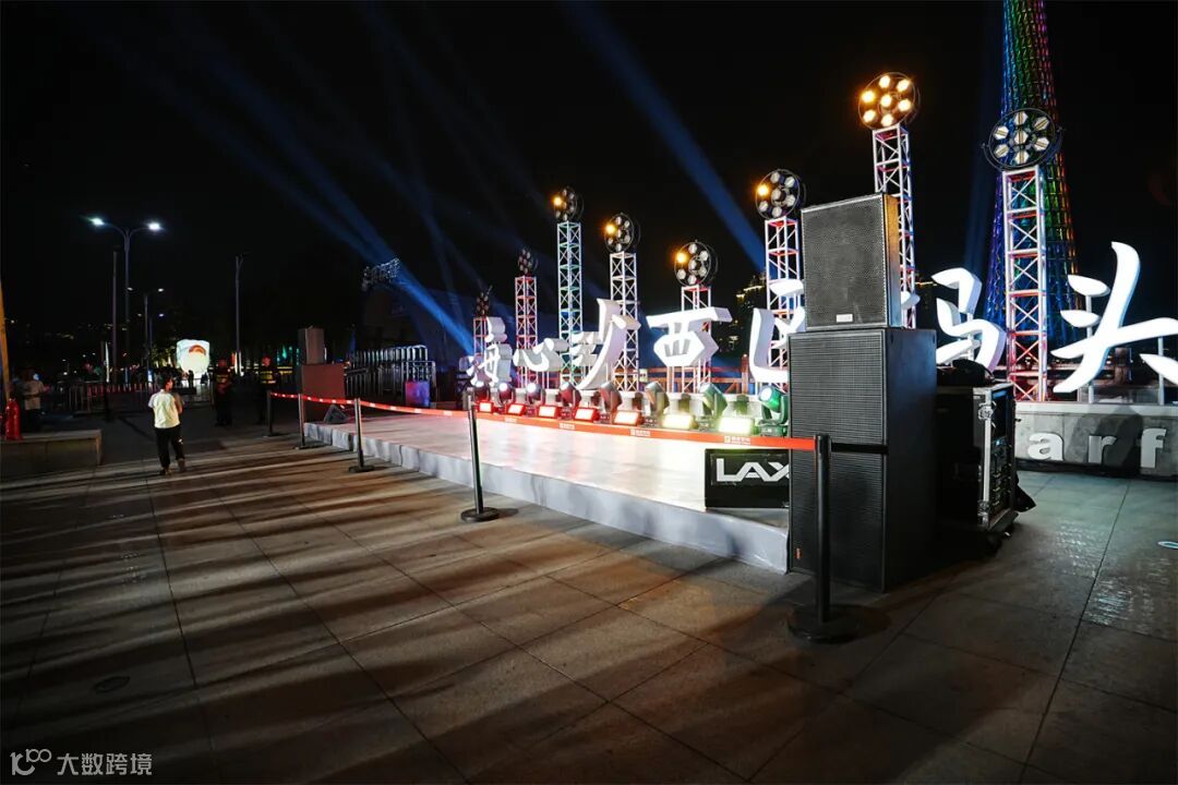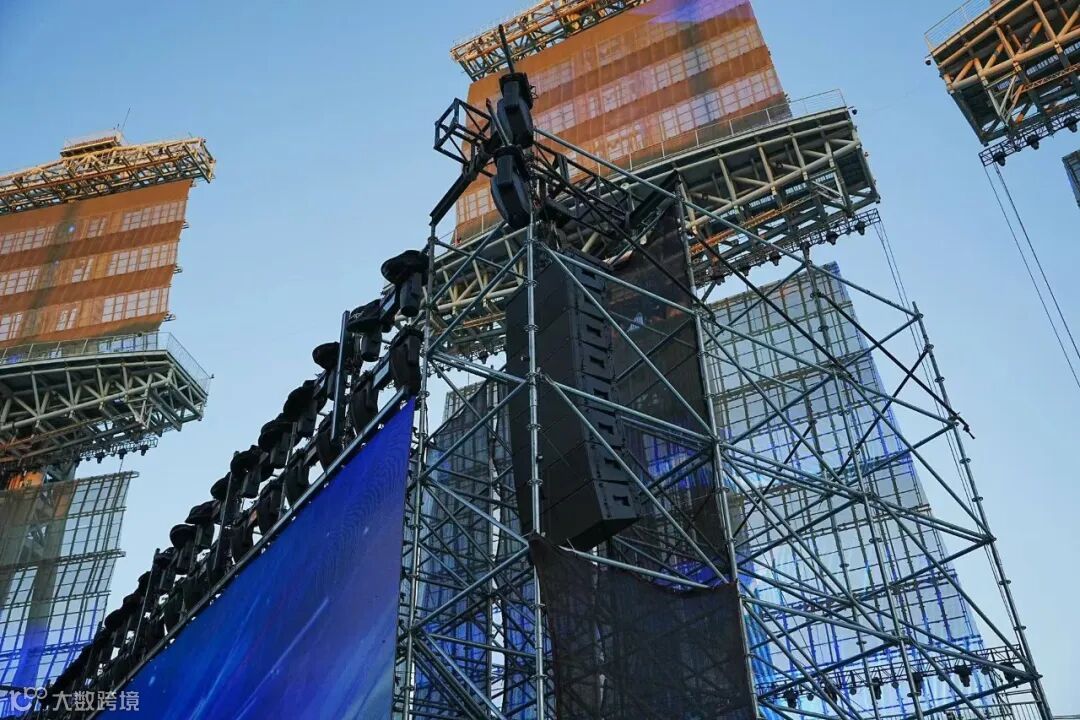舞台演出配置,设置完整的演出系统、音响系统、麦克风等。LAX在舞台两侧安装8+4的线阵列组合,舞台设置反听音响,确保三号桥舞台扩声需求。