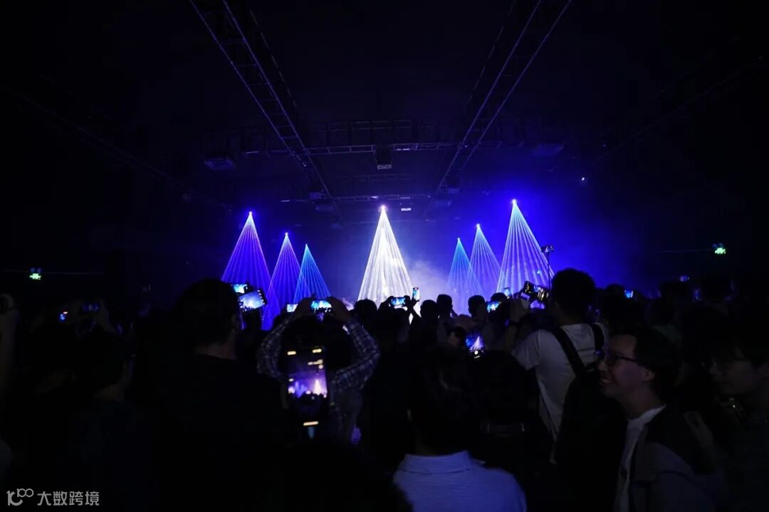 现场还有多种形式的沉浸式作品,不仅让屏幕后的“赛博版吉祥物”具象化,现场更设置巨型光影沉浸式体验空间,涵盖未来城市衣、食、住、行等多个方面,通过AIGC、视觉艺术、光影互动等方式,让到场观众能够提前体验到人工智能发展下的生活。