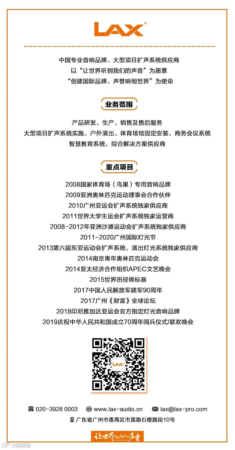 为促进学生的德智体美劳全面发展为出发点来培养学生,不管是从学术报告,大型会议,文艺演出等等,淮北西园中学报告厅有着重要的作用。为了完善淮北西园中学报告厅建设需要,给各种会议及演出活动提供良好的场地,安徽锐丰视创智能科技有限公司为西园中学设计了一套完善的音视频方案。这套方案包含扩声系统、会议系统、舞台灯光系统。报告厅扩声、会议系统最终采用了LAX AT曲线阵列系列扬声器组合,CM灵动系列扬声器、H系列功放以及周边产品设备,保证学校报告厅各项活动的高效完成。