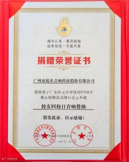 锐丰科技积极投身慈善公益活动,多年来,向社会贡献出的不仅仅是捐款赞助,更重要的是锐丰人热心投入参与到各种回馈社会的活动。在此次校庆中,锐丰科技以爱之名,为活动提供音响及技术保障服务。
