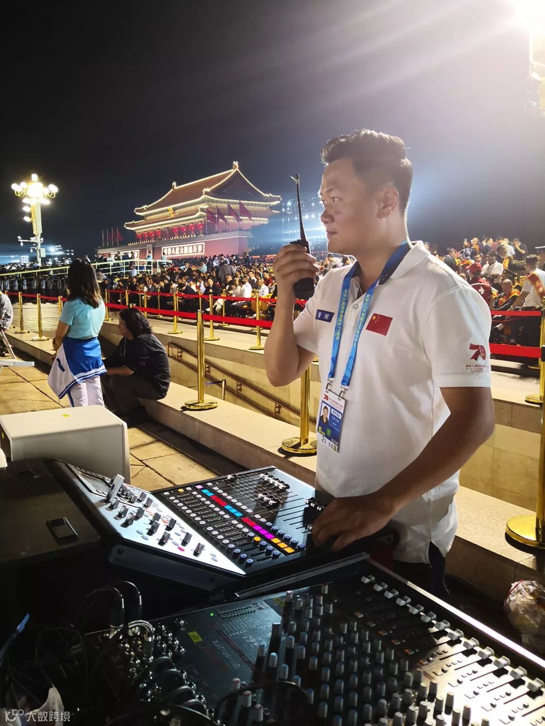 我们团队9月5日正式进场,刚开始现场搭建的10天里面,平均每天的工作时间超过12小时,最长的工作时间超过22小时,本场活动是国家最大的活动,安保规格非常高,很多时候给到我们音响搭建和调试的时间非常少,我们要不断去配合主办方的彩排任务,凌晨工作是常态,基本每天能在天安门看日出和升旗仪式,我觉得非常自豪。