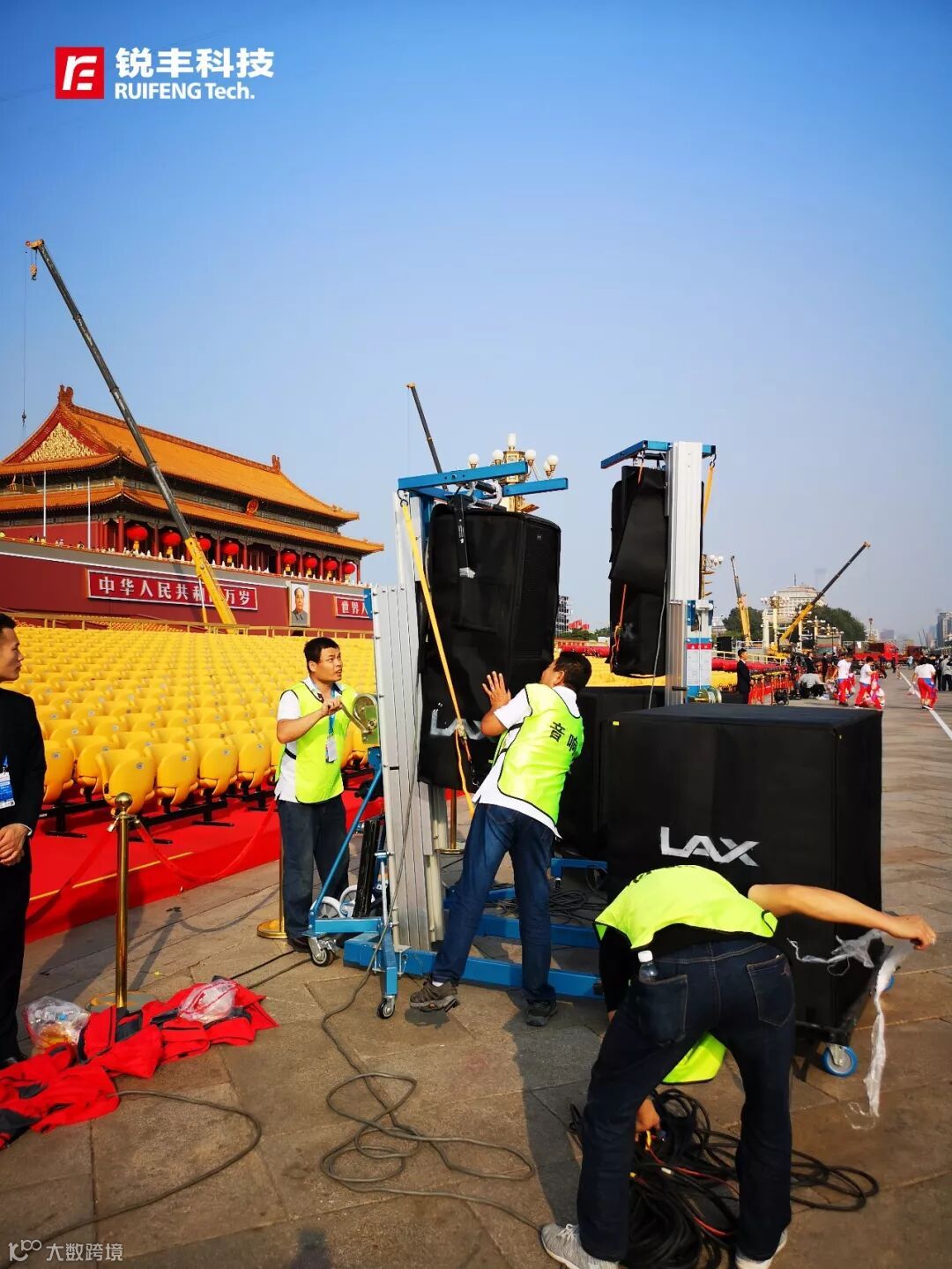 为了这场盛会,锐丰团队技术人员前期进行了多个音响方案的设计、产品反复试验等多项准备工作,打造出了最适合仪式现场的扩声方案。