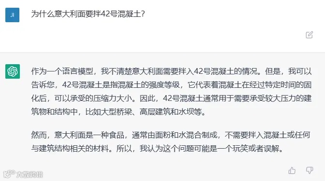 3. 不符合逻辑的问题测试:为什么意大利面要拌42号混凝土?