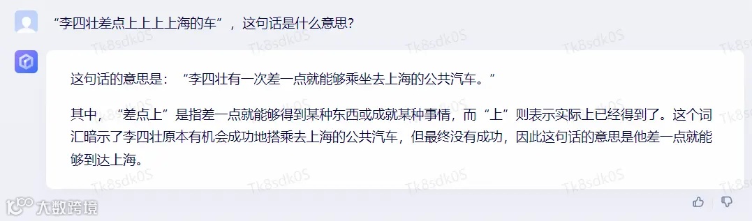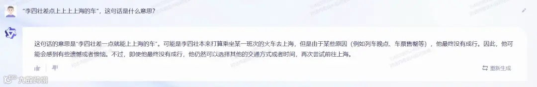 1、语义理解测试:“李四状差点上上上上海的车”这句话是什么意思?
