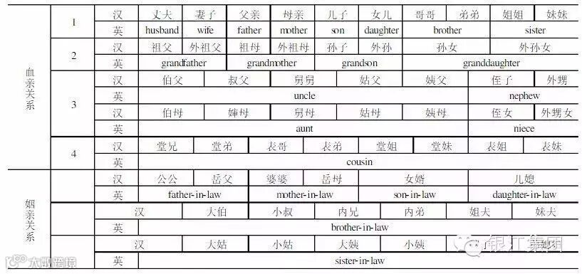 更能体现汉语称呼复杂的还是同辈人,英语中用cousin大而化之的概念在汉语中则必须根据具体的亲属关系选用堂兄、堂弟、堂姐、堂妹、表兄、表弟、表姐、表妹这八个中的一个指代。