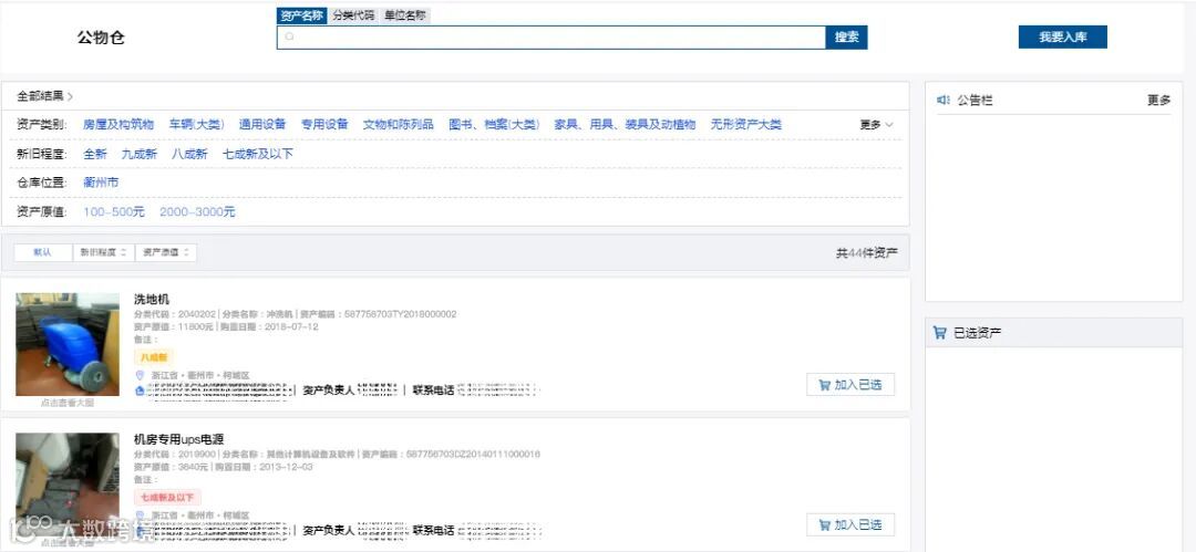 电子公物仓提供了从信息登记、查询浏览、划拨审批到反馈公示的全流程服务。产权单位将闲置资产入库公物仓后,各单位就能像“网购”一样实时浏览和查询图文并茂的资产清单,从中挑选心仪资产并申请调剂。