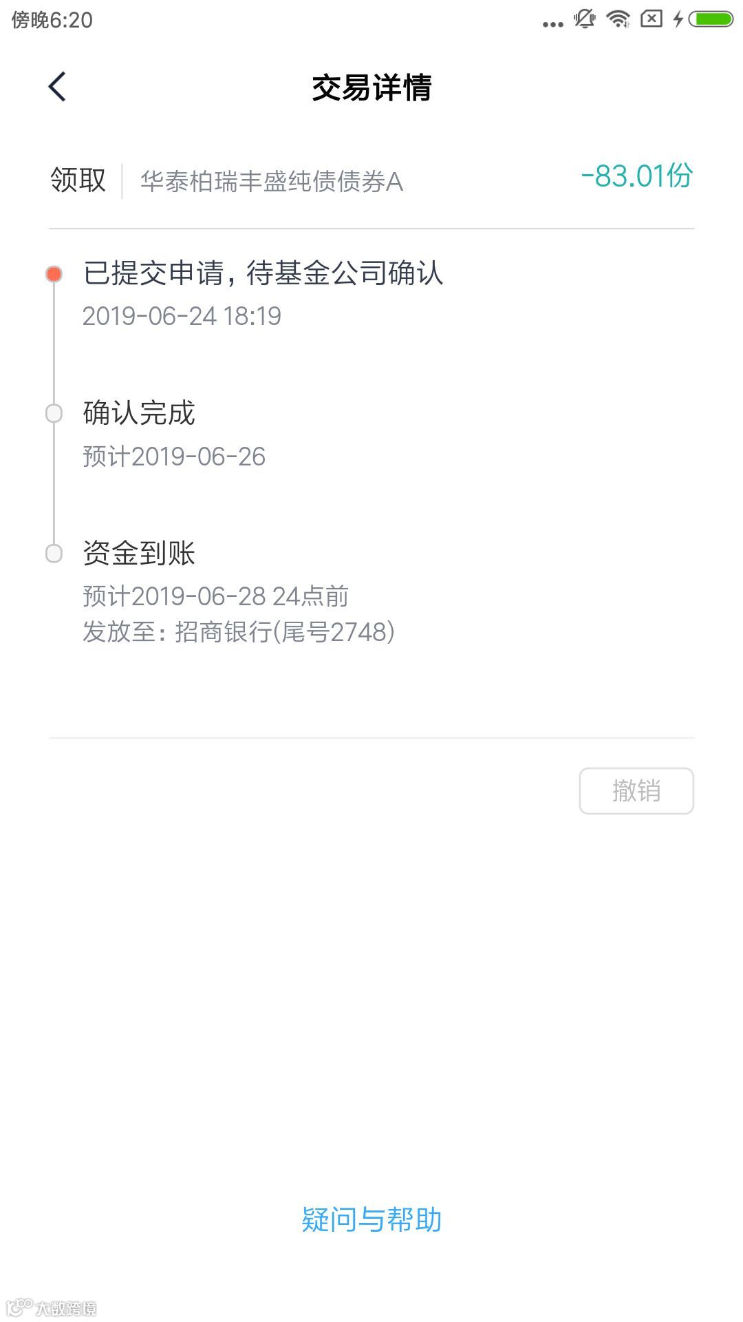 不仅要做到操作状态及时反馈,还要能对将要发生的事情进行预告,这样也可提升用户可控感,如下图小米理财提取资产以后预计到账提示。此外,对于支付结果跟踪,要及时传达给用户,即使是出现了异常也要能够及时同步,以免用户产生恐慌,在资产领取后将详细的资金流转过程展现给用户,同样强调该笔资金的安全性,提高产品安全感。