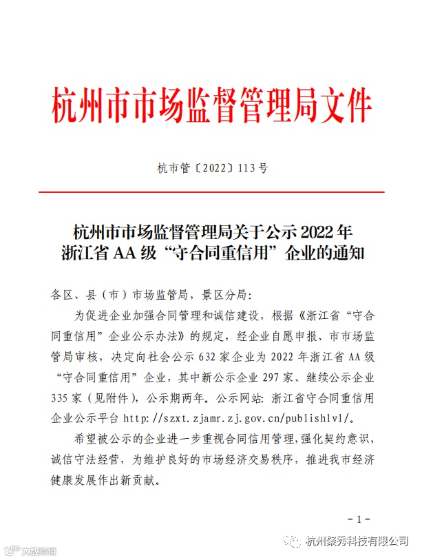 浙江省“守合同重信用”企业是浙江省市场监督管理局对企业和品牌的经营状态、合同信用管理体系、合同履约能力、经营效益、社会信誉、企业可持续发展能力等方面进行的综合测评。