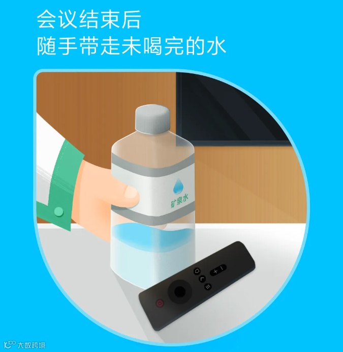 2.会议和活动尽量减少提供瓶装矿泉水,开会自带水杯,少用公共水杯,减少清洗用水;
