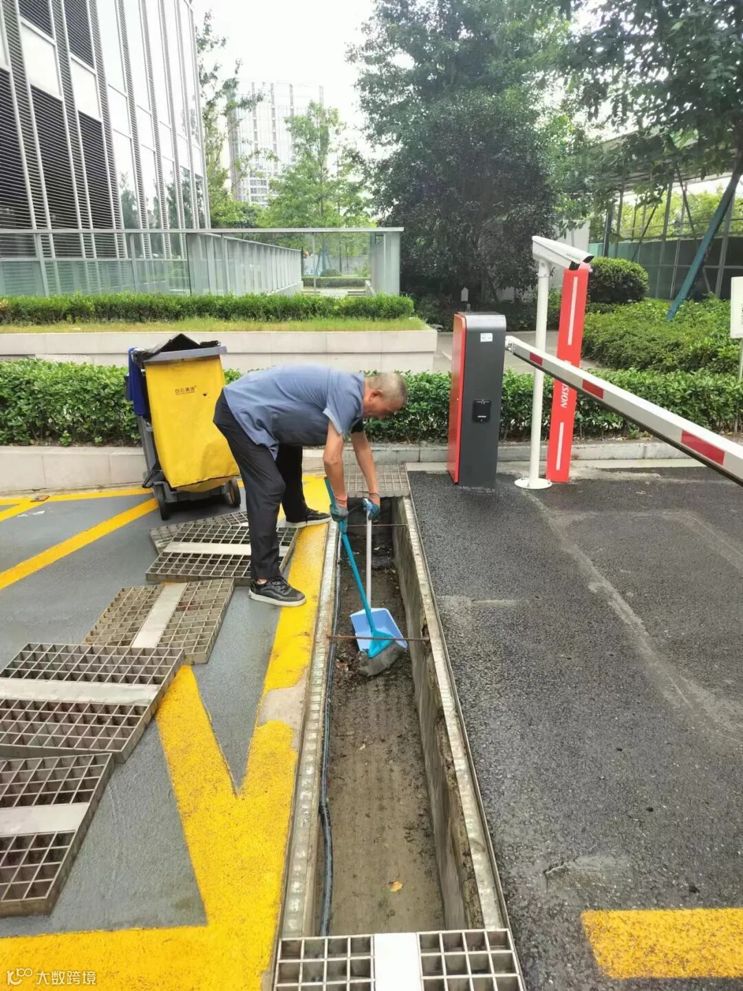 及时对天台、主干道、绿化带、地库等多个点位排查、清理,确保雨水来临时排水畅通。