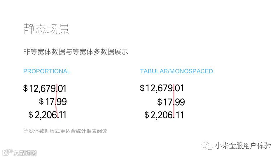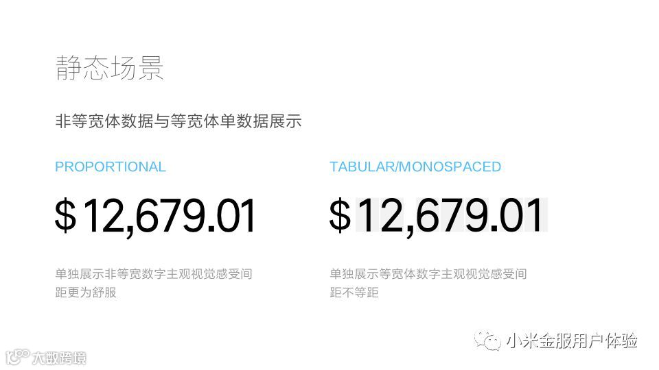 数字是金服业务中最为重要的设计要素之一,这是因为在金服业务中,有大量的诸如电商、支付、财富管理等场景需要数字来直接表达。而当前现状是我们有整个大品牌体系下的诸如小米兰亭这种通用字体,但唯独缺少针对金服业务这种特殊需求的特定数字字体以及数字的表达规范。因此需要总结出一套适合我们业务的数字的功能设计需求。