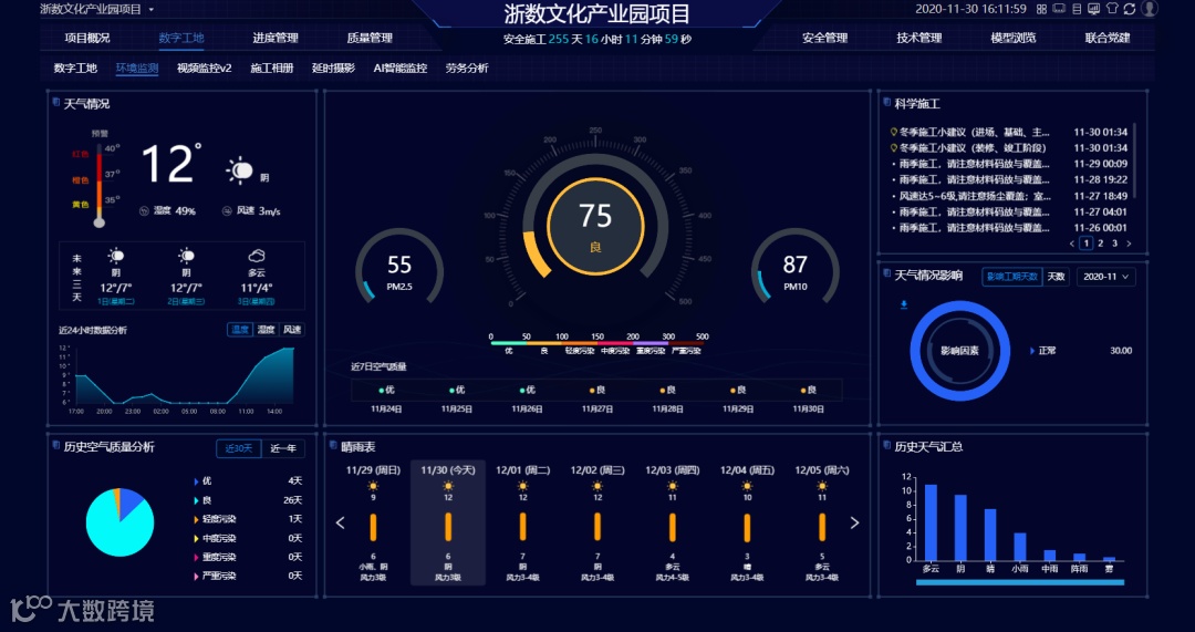 一大清早,浙数文化产业园项目便进入紧张的施工中。施工人员需要佩戴安全帽,进行人脸识别、体温检测、绿码核验后方能进入施工现场。后台系统会通过技术显示其身份信息,记录、统计当日作业人员情况,还能按工种、年龄、地域等因素分析统计,有助于及时调整不同工种的投入人数,并在疫情防控方面及时进行属地管理。