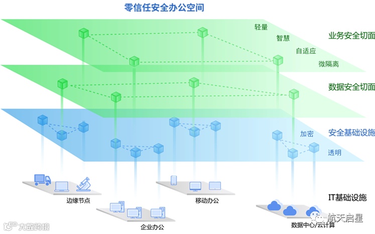 航天启星零信任安全办公空间基于标准零信任架构,使用新一代安全沙箱(可信计算/内核纵深过滤/数据加密)、软件定义边界等技术,在现有IT基础设施上为企业的重要应用、数据,构建一个虚拟的、弹性的安全办公空间,数据可以在安全空间中自由流转、安全计算。
