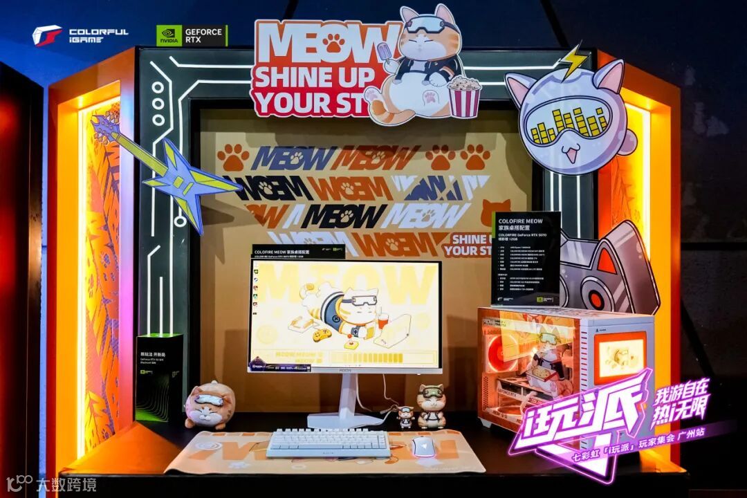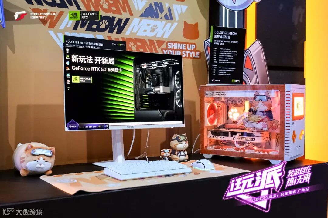除了硬核性能,七彩虹还打造了高颜值桌搭体验区。一套是iGame 柒小希IP桌搭,白粉配色搭配柒小希首发纪念版RTX 5070显卡,甜酷中透着战斗力,深受二次元与DIY爱好者青睐;另一套是COLOFIRE MEOW橘猫电竞房,采用橘影橙RTX 5070显卡与大量萌系装饰,营造出可爱赛博风。两套桌搭均搭载26.5英寸QD-OLED屏的AGON电竞显示器AG276QSD/WS,它支持360Hz高刷新率、VESA DisplayHDR™ True Black 400认证与Quantum Dot量子点技术,兼顾疾速响应与精准色彩。不仅满足电竞需求,也以纯白外观与极简设计,成为“实力与颜值兼备”的桌搭之选。