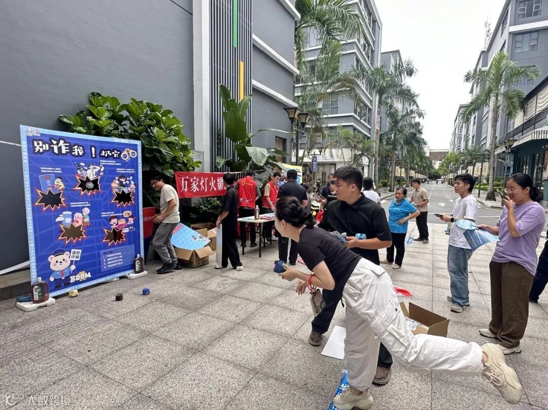 互动区域更是欢声笑语不断!“反诈套圈大挑战”将防骗知识融入游戏环节,每个圈圈都代表一道反诈题目,只有答对题目才能获得套圈机会;“反诈投掷游戏”则让参与者在轻松愉快的氛围中巩固所学知识。成功通关的居民不仅收获了实用知识,还赢得了精美礼品,脸上洋溢着喜悦的笑容。