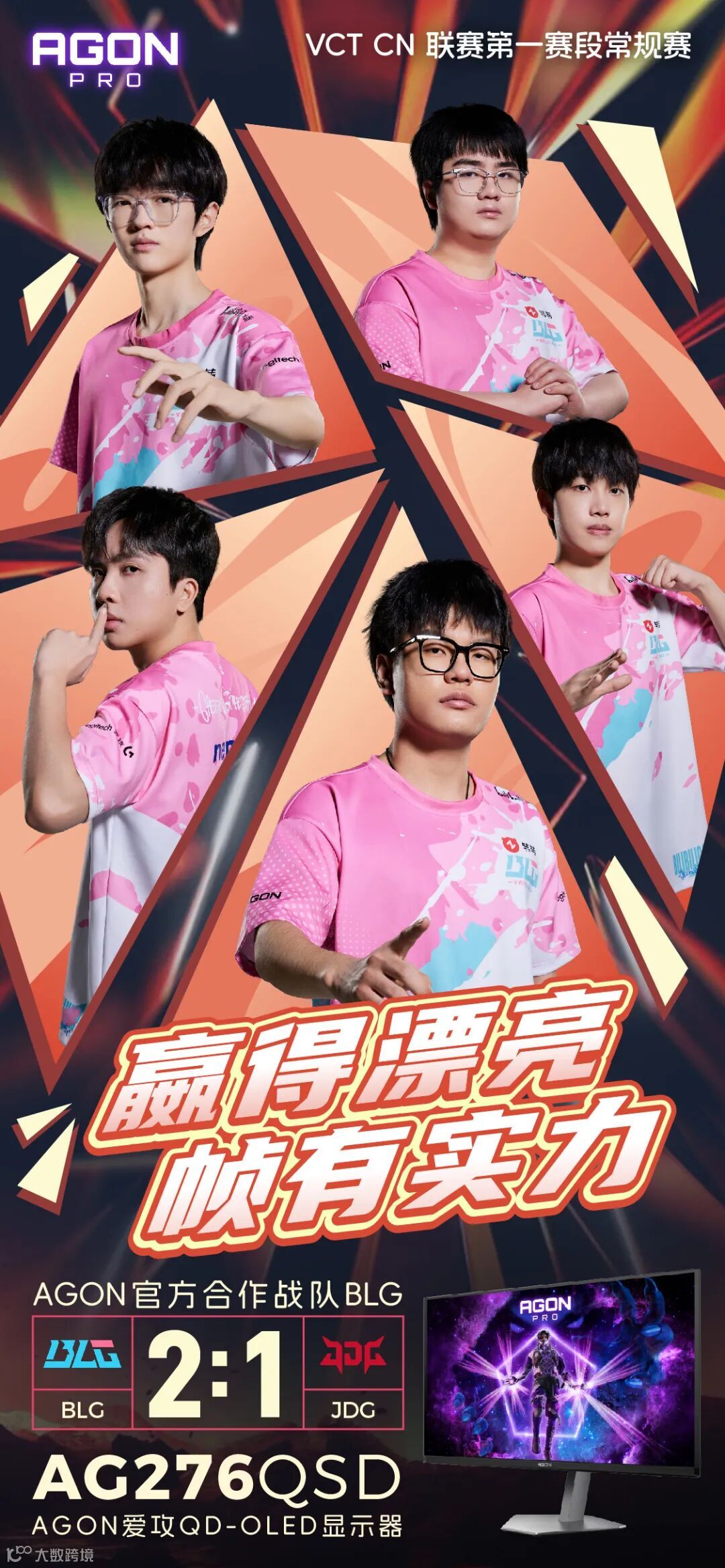 3月30日19:00,BLG战队将迎来本阶段第三大场关键对决,对阵劲敌AG战队,连胜之势能否再续,备受期待。精彩对抗一触即发,战术博弈与极限操作势必再掀热潮。欢迎各位玩家与粉丝锁定VCT CN联赛直播间,与AGON一起为BLG战队加油助威,见证热血高光时刻。如果你也渴望拥有与职业选手同款的沉浸式游戏体验,点击“阅读原文”,了解更多AGON专业电竞显示器产品信息。