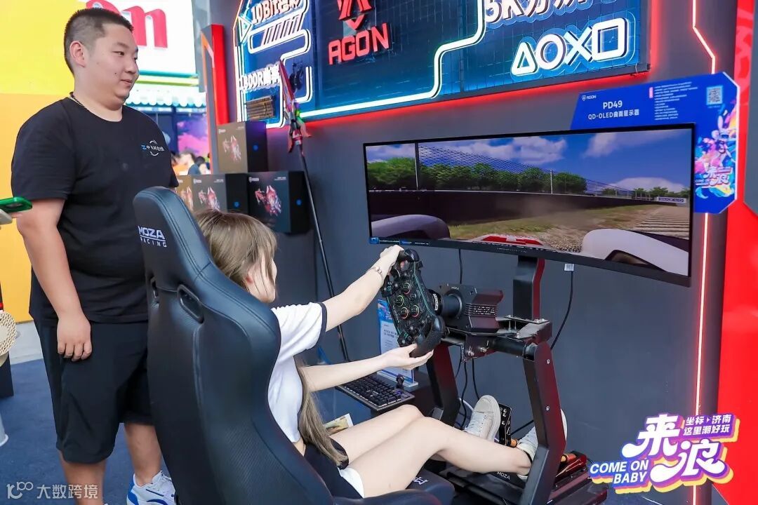 AGON爱攻×保时捷设计第三代OLED超宽屏PD49作为本次嘉年华当之无愧的明星产品之一,其搭载的49英寸QD-OLED面板支持5120*1440的准 5K超高清分辨率,让玩家在体验赛车模拟器时,连赛道旁的每一片落叶都清晰可见。240Hz疾速高刷更是将“速度感”拉满,高速过弯时画面依然流畅无比,没有丝毫拖影。高保真立体声扬声器,配合 DTS 数字化影院系统音效,生动还原引擎的轰鸣声、轮胎与地面的摩擦声,都让人肾上腺素飙升,以最真实、最纯粹的感官体验,让现场玩家仿佛置身于真实的赛道之上。