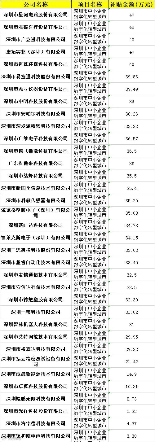 深圳市2025年第三批中小企业数字化转型城市试点项目(中小企业数字化改造专项)公示名单,在2025年11月14日发布公示,此批次共有33家企业获批,资助资金915.43万元。