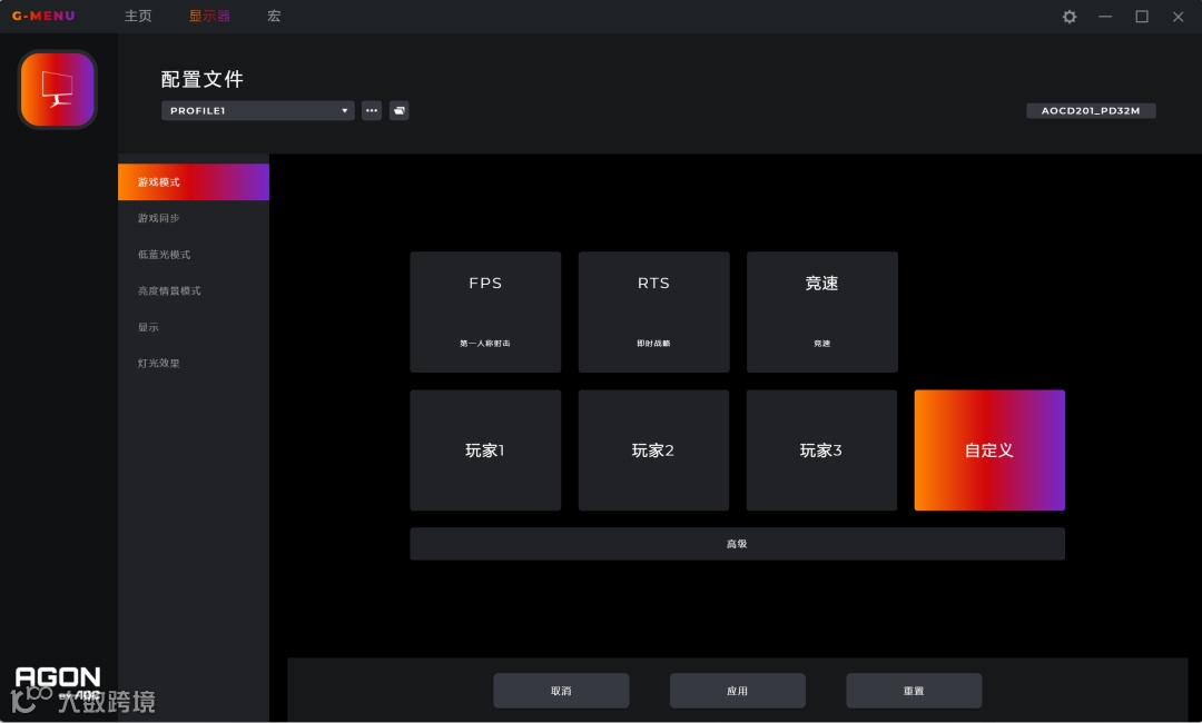 预设FPS\RTS\竞速\玩家1\玩家2\玩家3,六种游戏模式 -