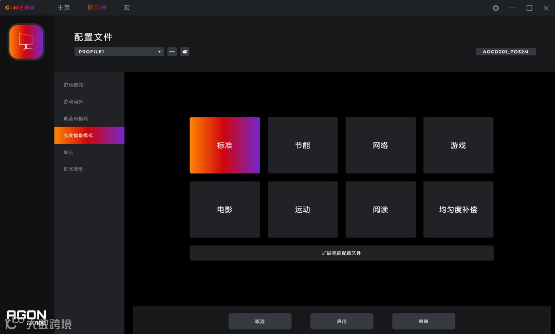 预设多媒体、网络、办公室、阅读四种低蓝光模式 -