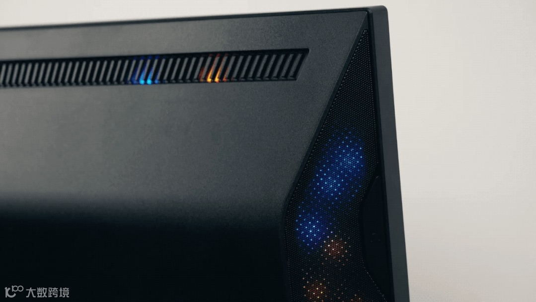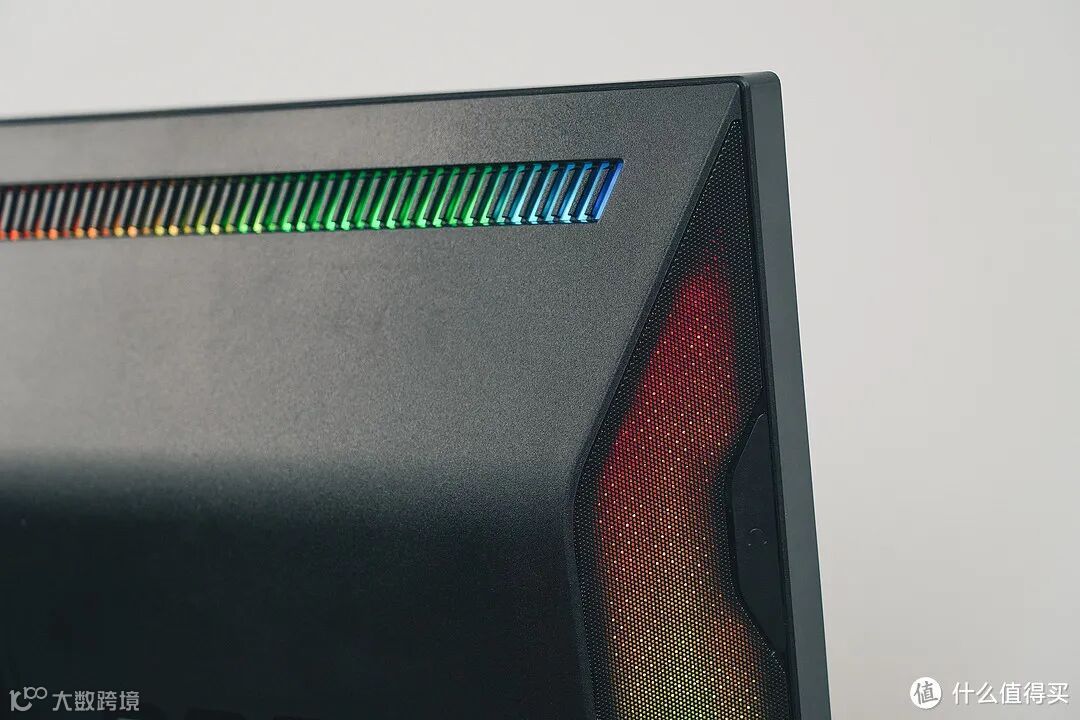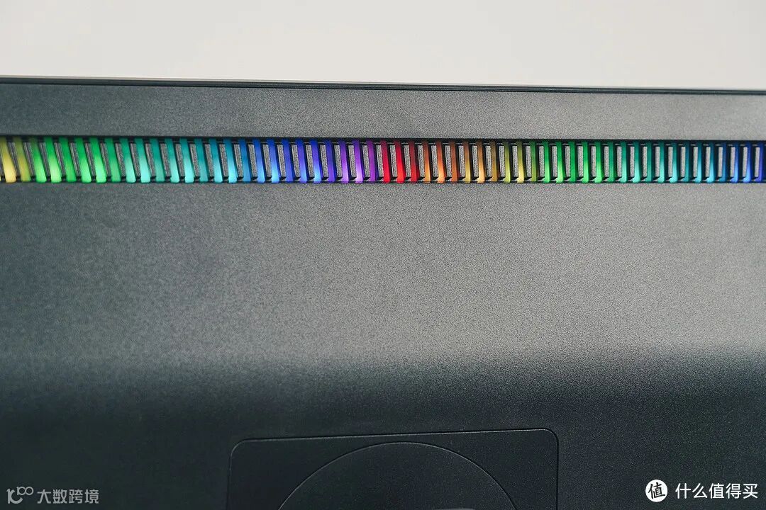🔽 整机设计了四处氛围灯,分别位于背面顶部、左右两侧和支架底部中轴上。