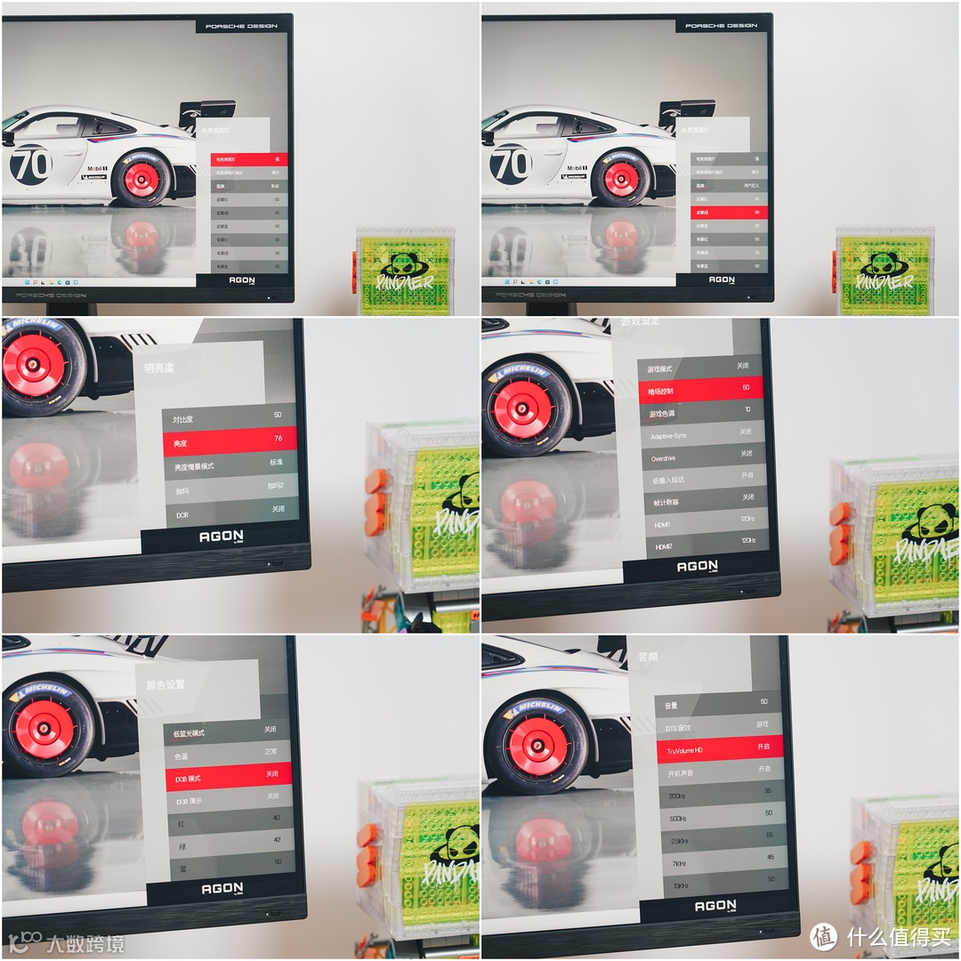 🔽 OSD菜单经过了重新的设计,上下还有Porsche Design和AGON的Logo。